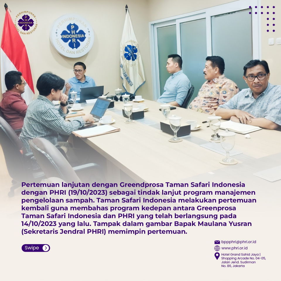 RAPAT PHRI BERSAMA KEMENPAR TERKAIT PERSIAPAN ASIAN GREEN HOTEL AWARD PADA 3 NOVEMBER 2023 DI HOTEL GRAND SAHID JAYA